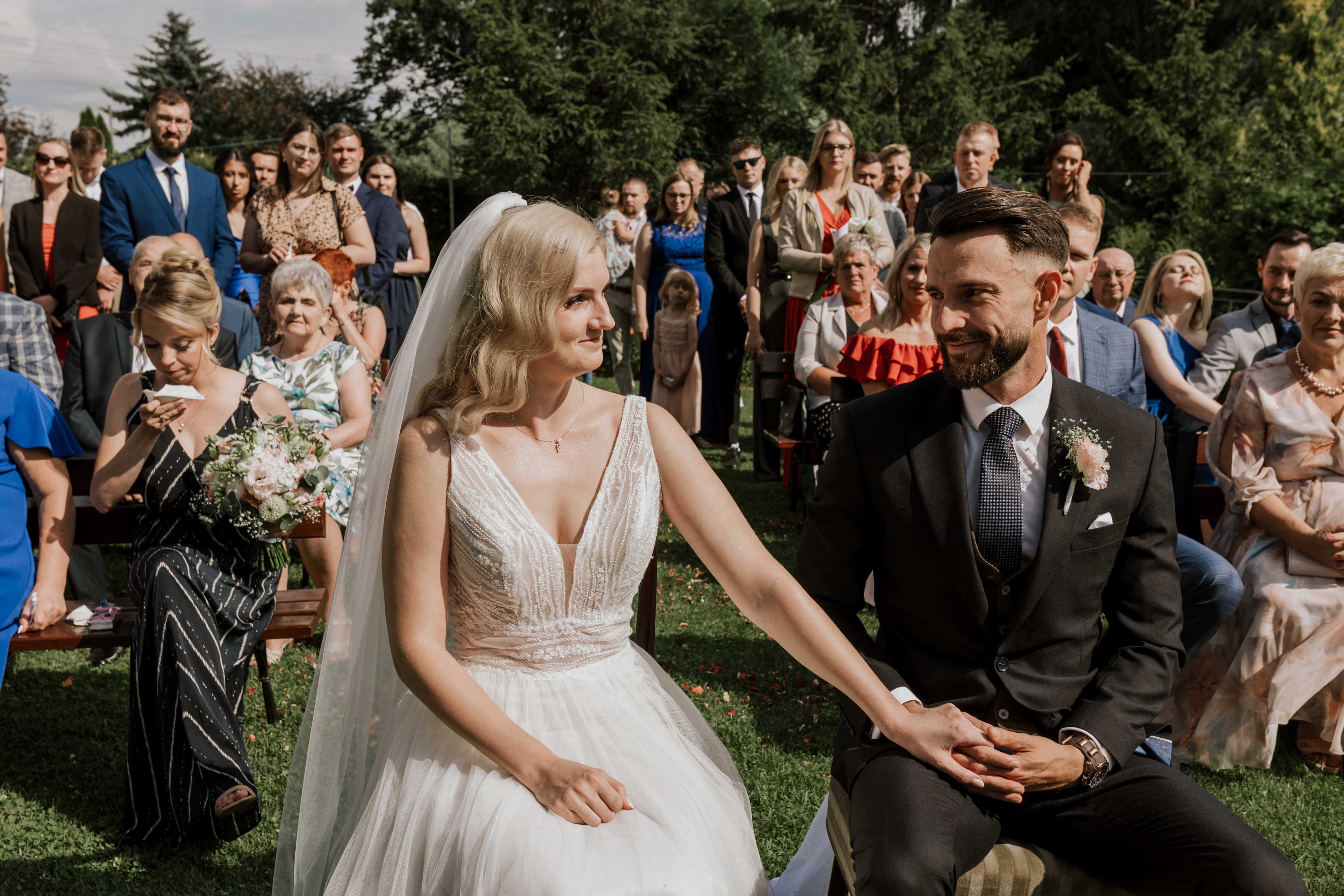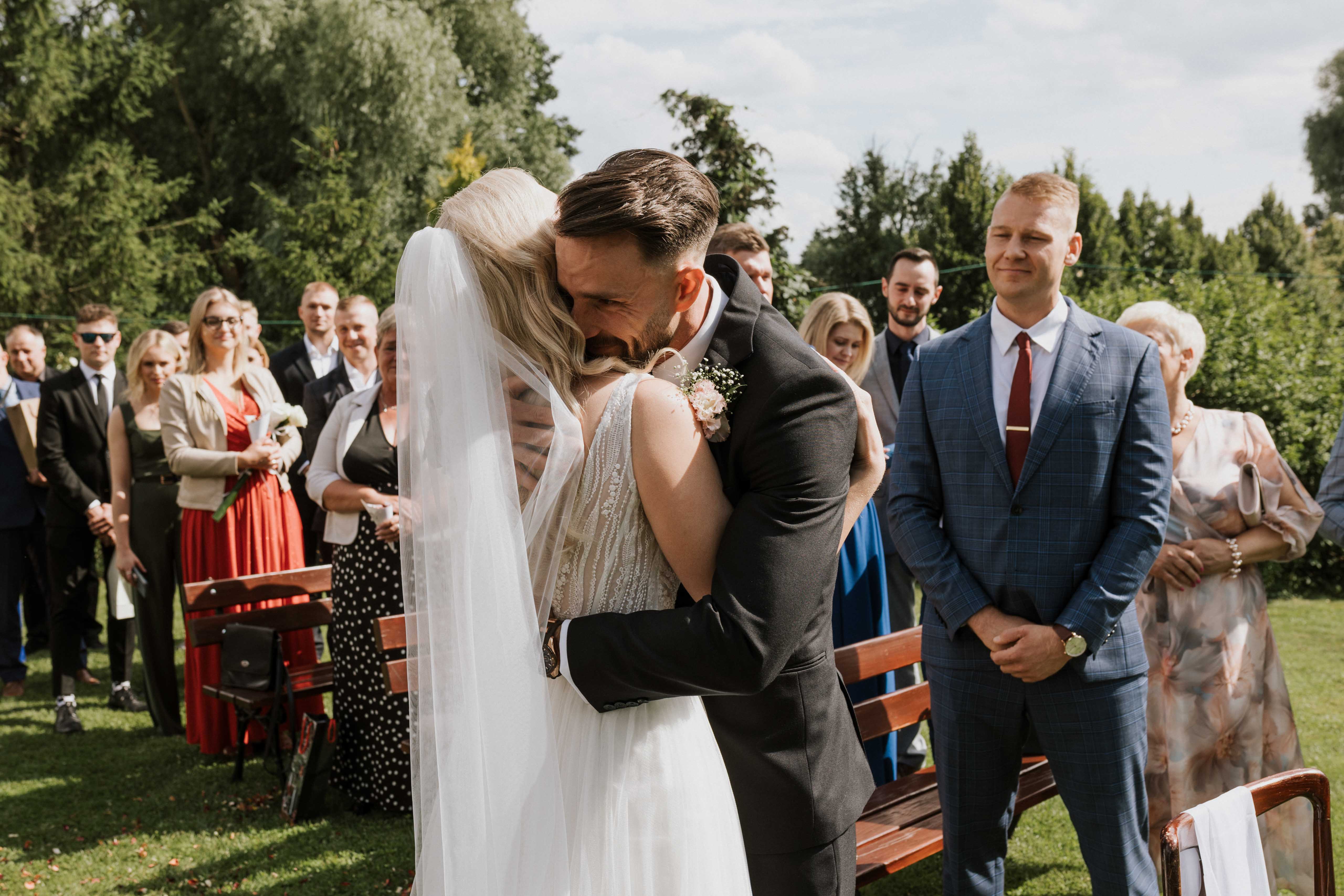 Ola i Bartek wybrali wyjątkową oprawę dla swojej przysięgi – ceremonia odbyła się pod gołym niebem, w otoczeniu zieleni i naturalnych dekoracji. Był to moment pełen wzruszeń dla bliskich i pary młodej, w którym dodatkowo piękne otoczenie stworzyło niezapomniany klimat. Uwielbiam takie reportaże ślubne, na których sama nie mogę powstrzymać się od łez wzruszenia!